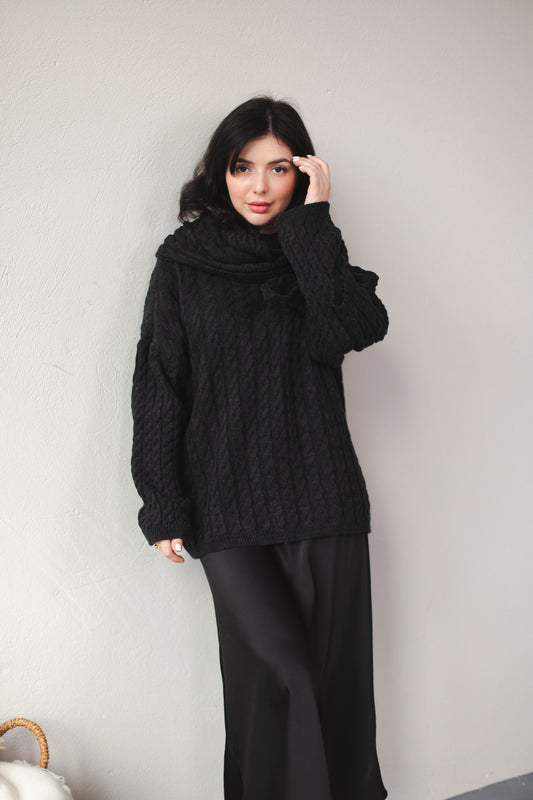Светр з в'язкою "колосок" графітовий з шарфом