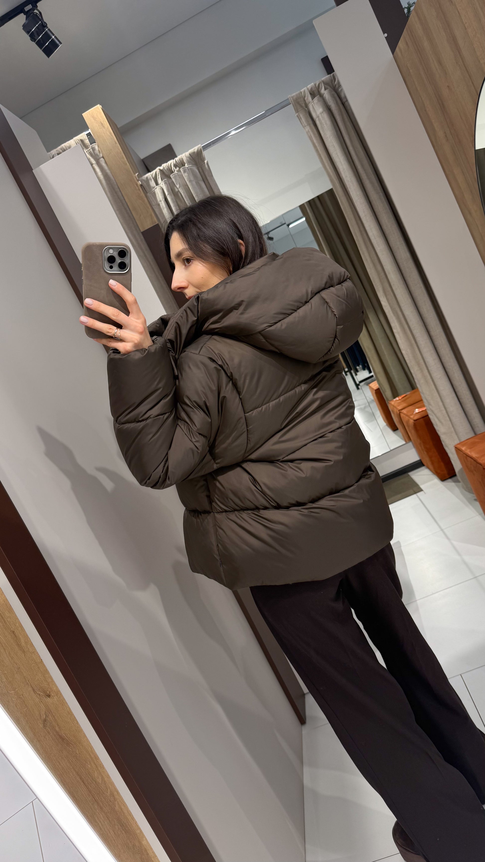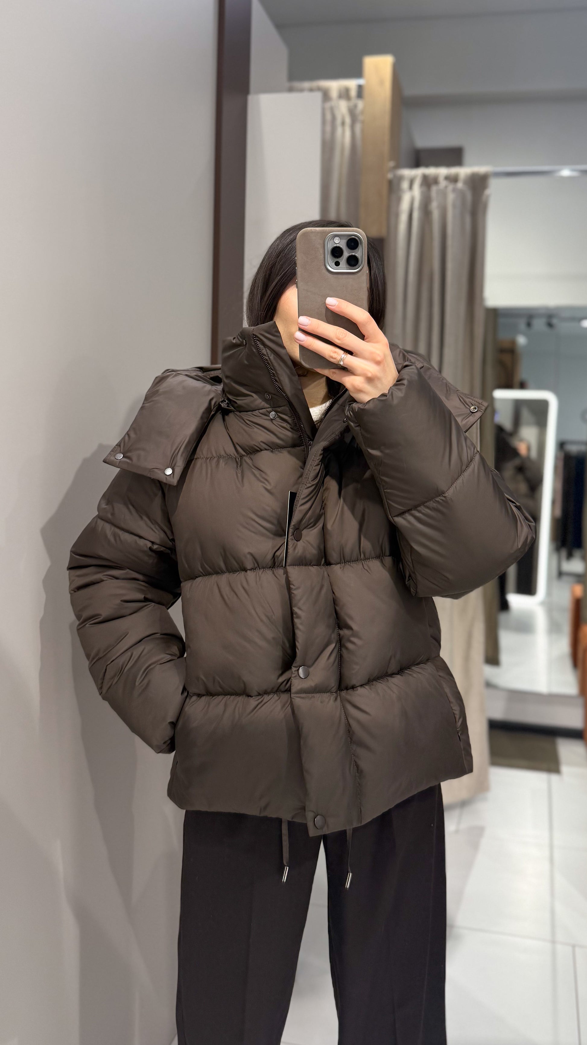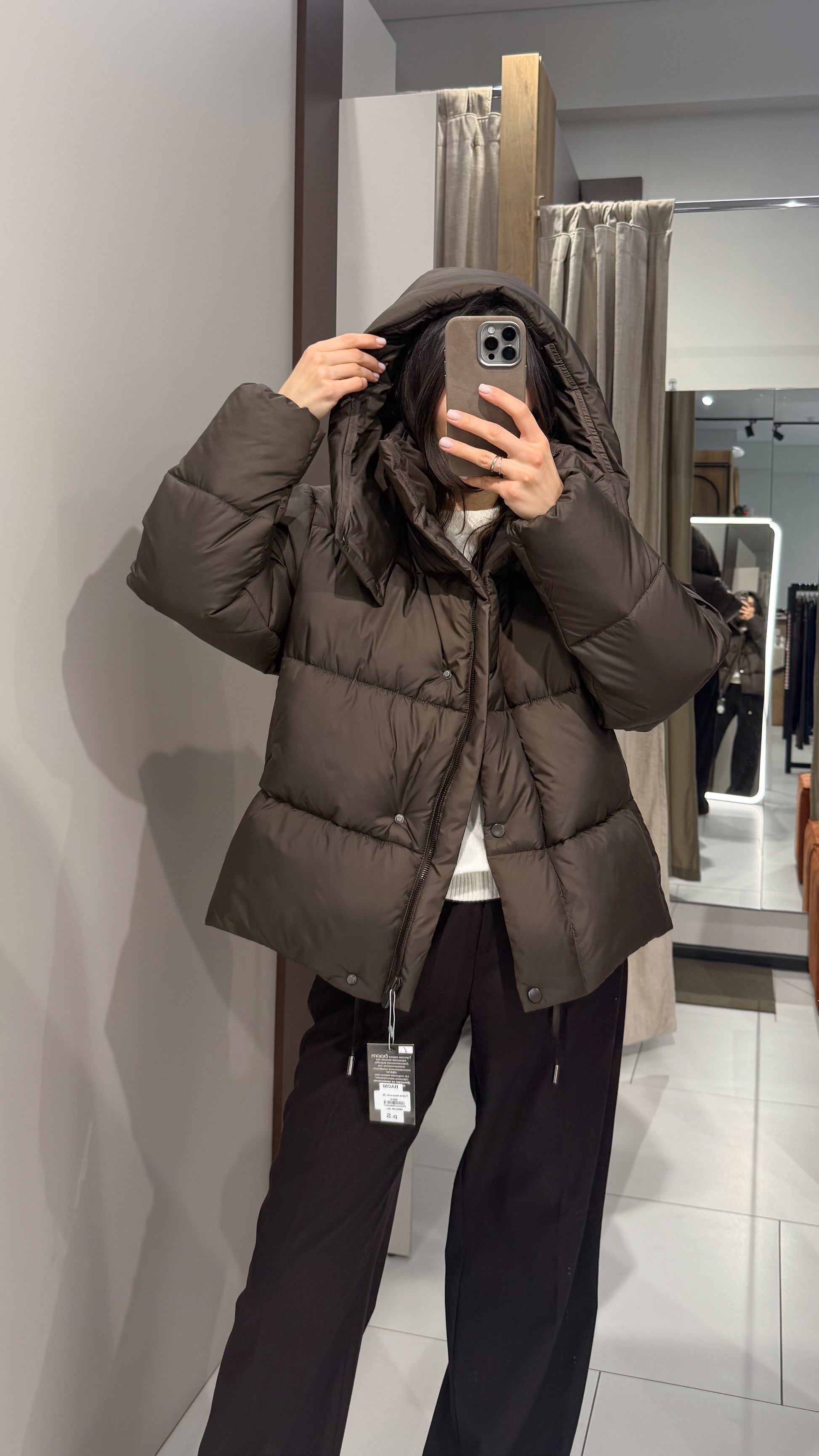 Куртка має відстібний капюшон, приховані кишені та внутрішню кулісу на талії й внизу виробу.