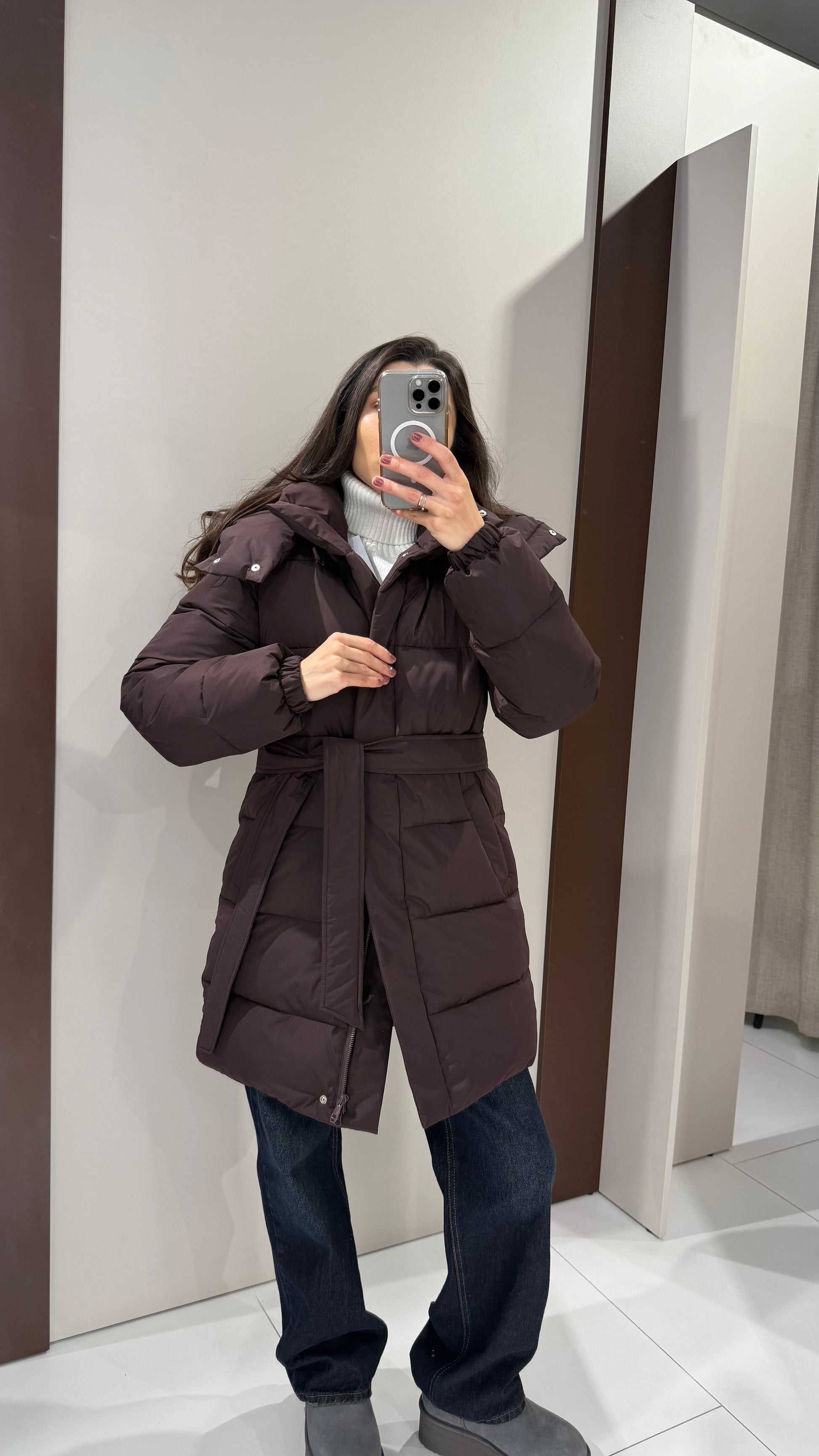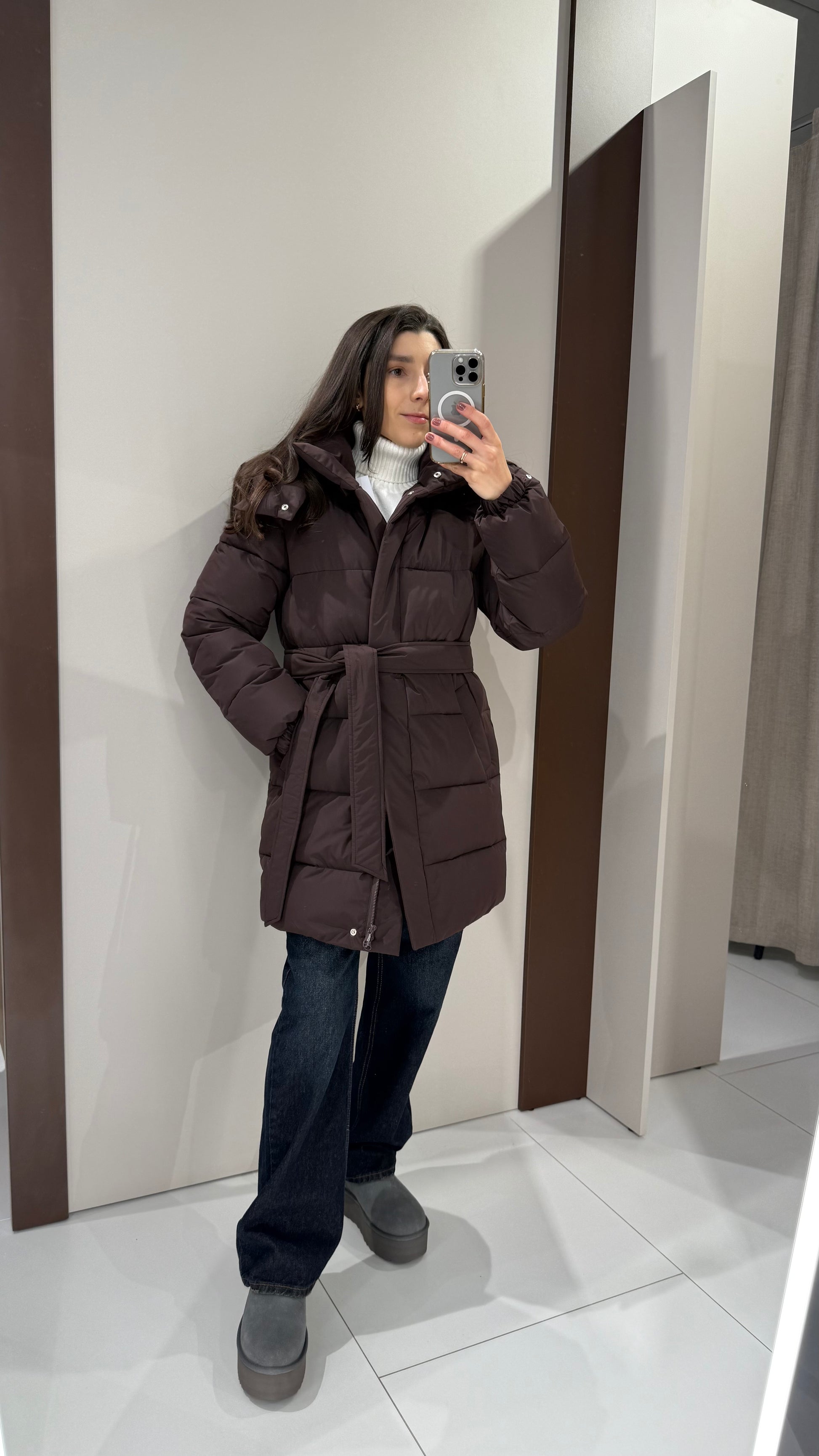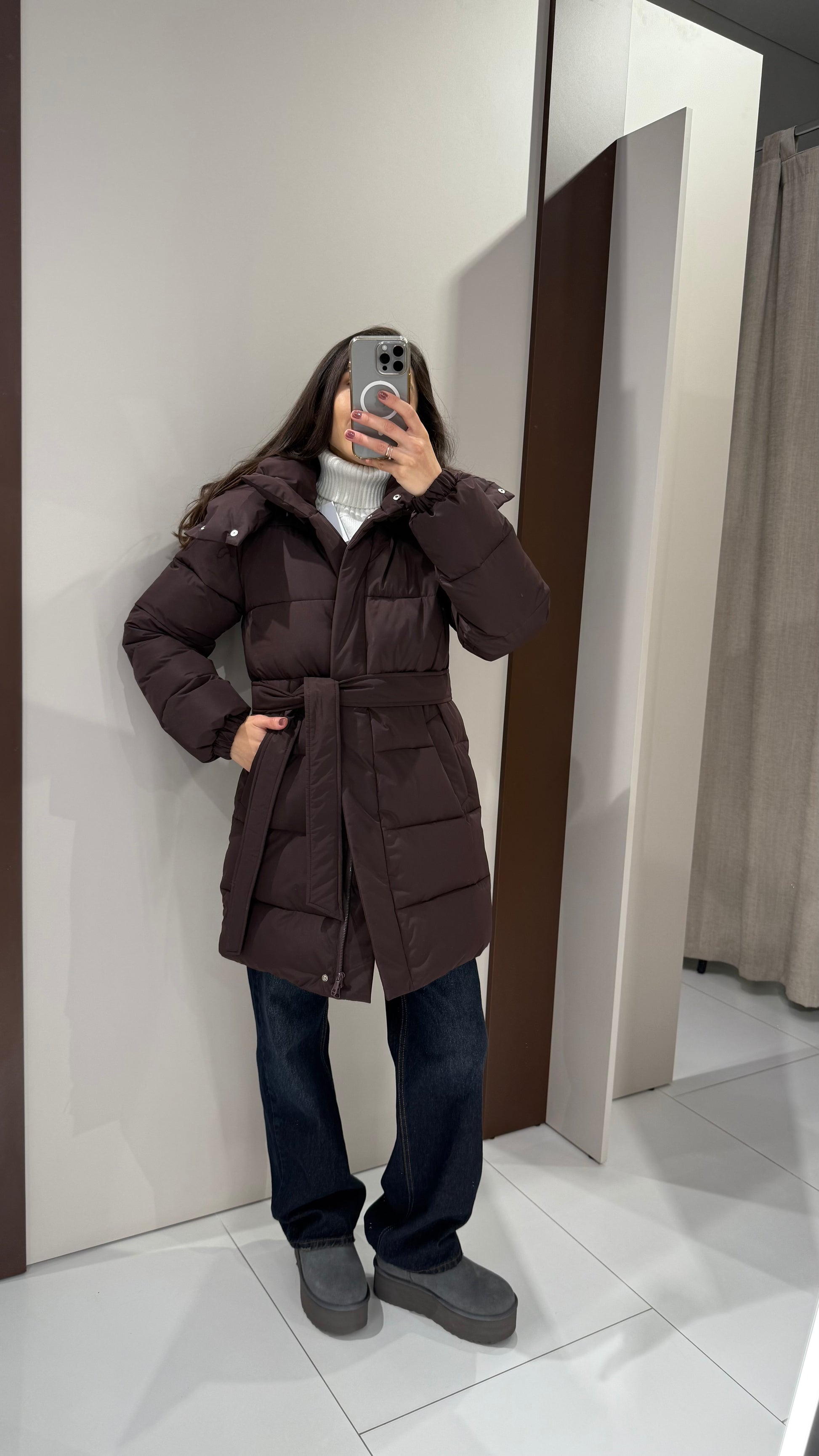 В комплекті є пояс та відстібний капюшон.
