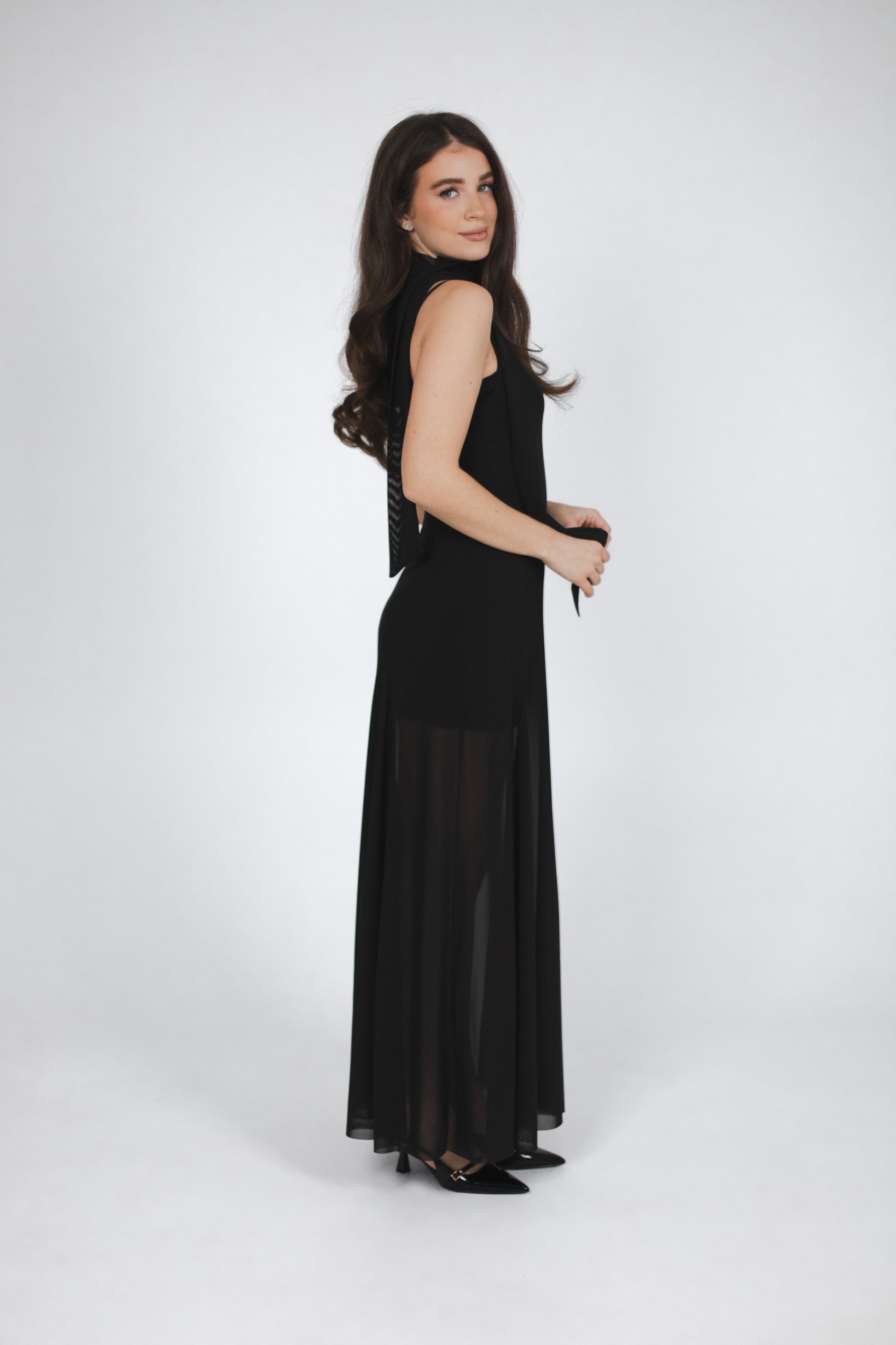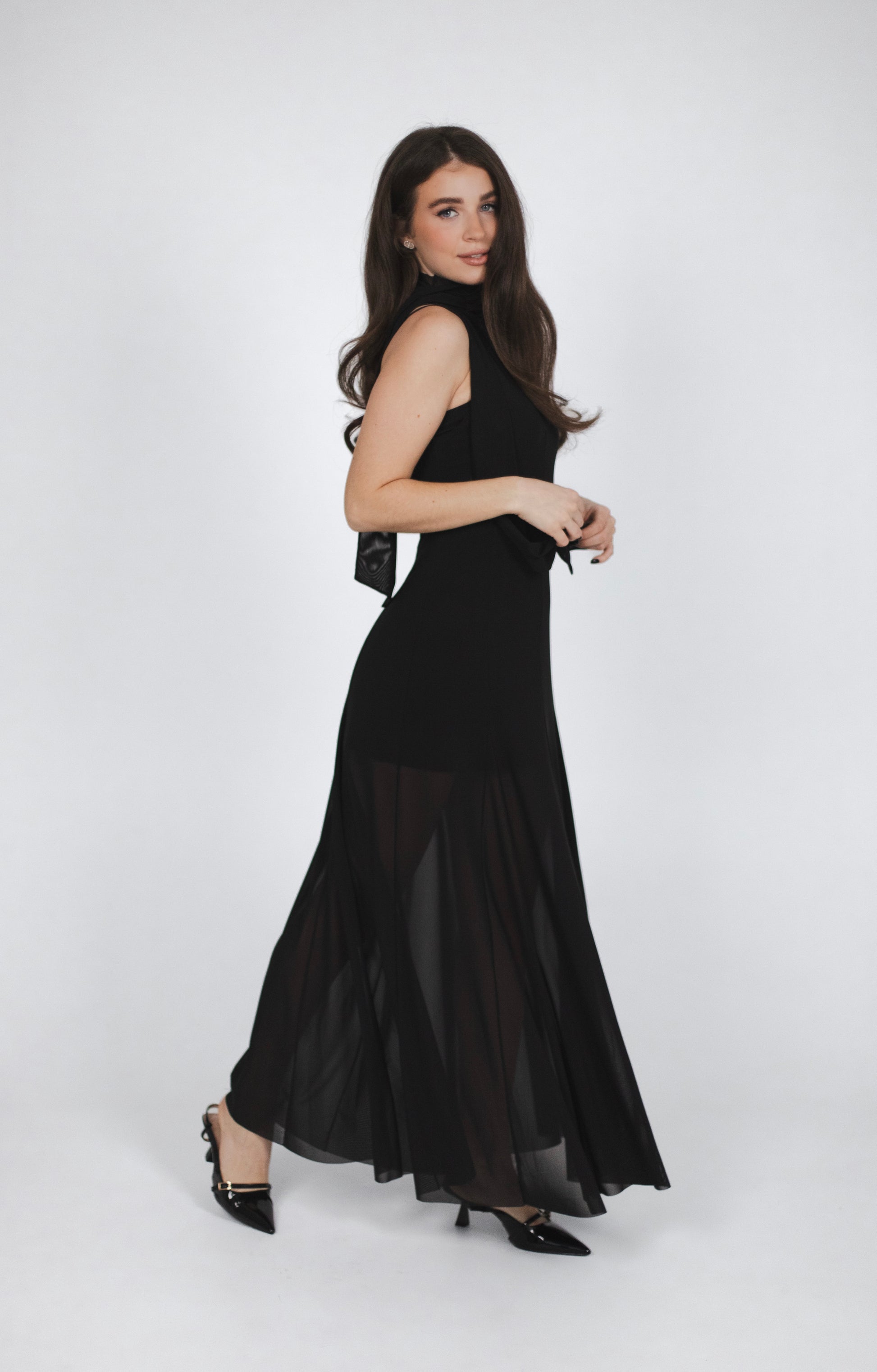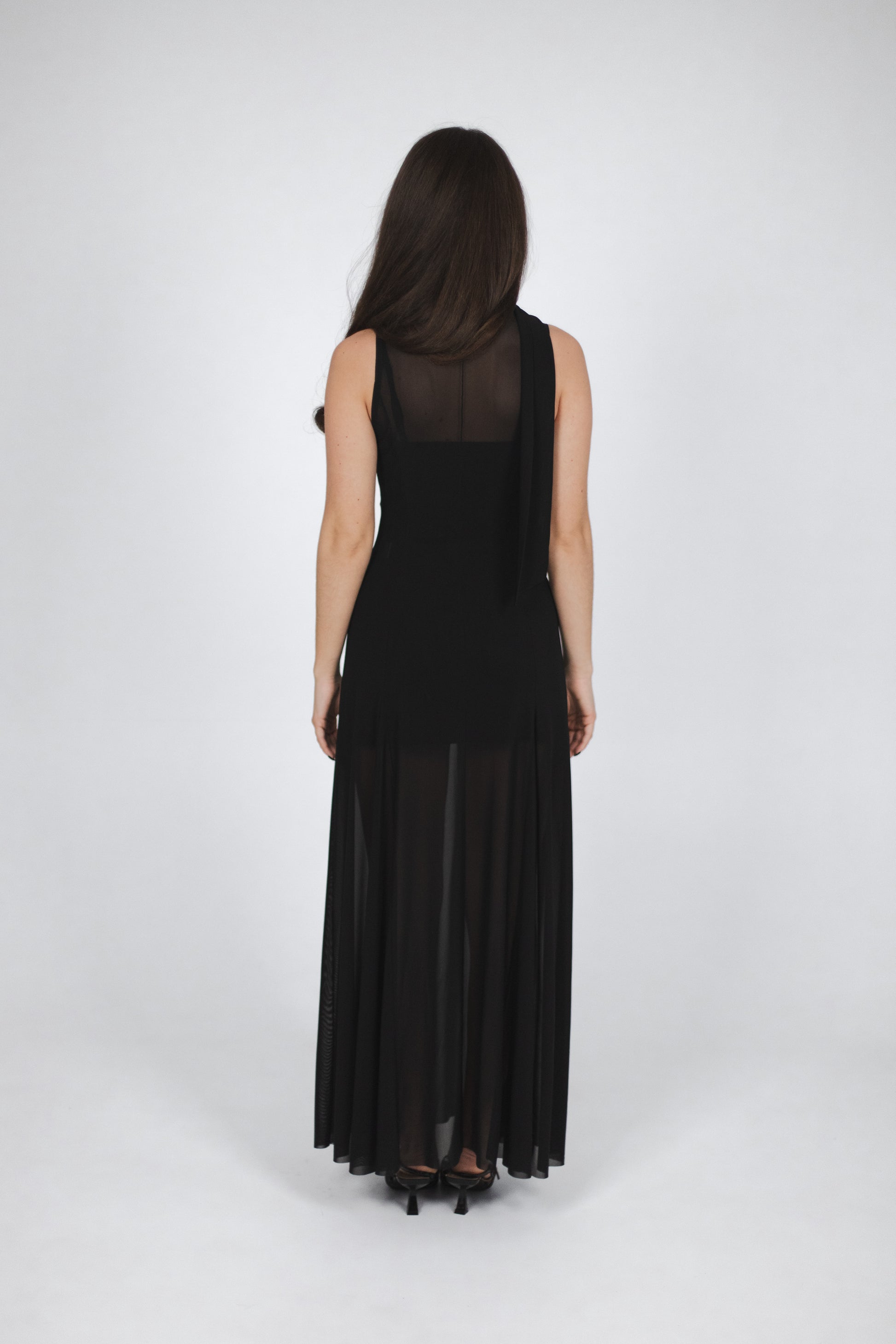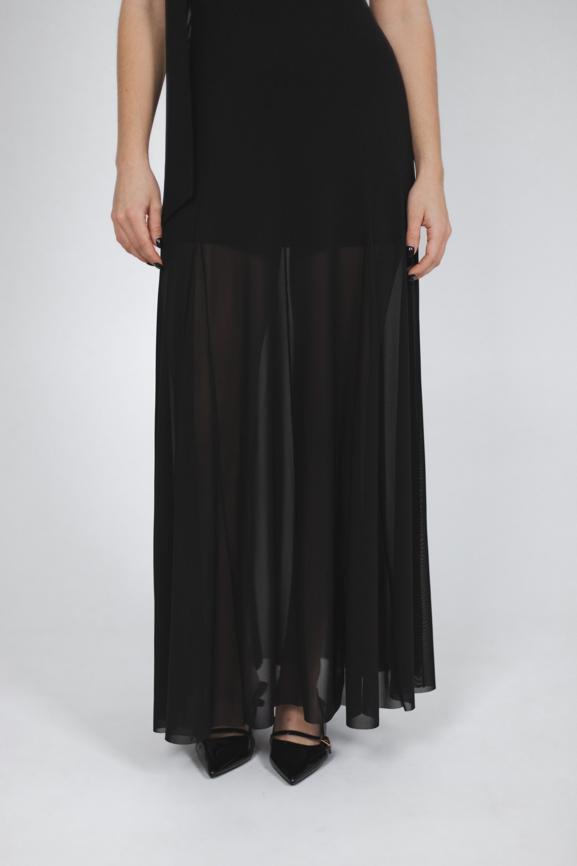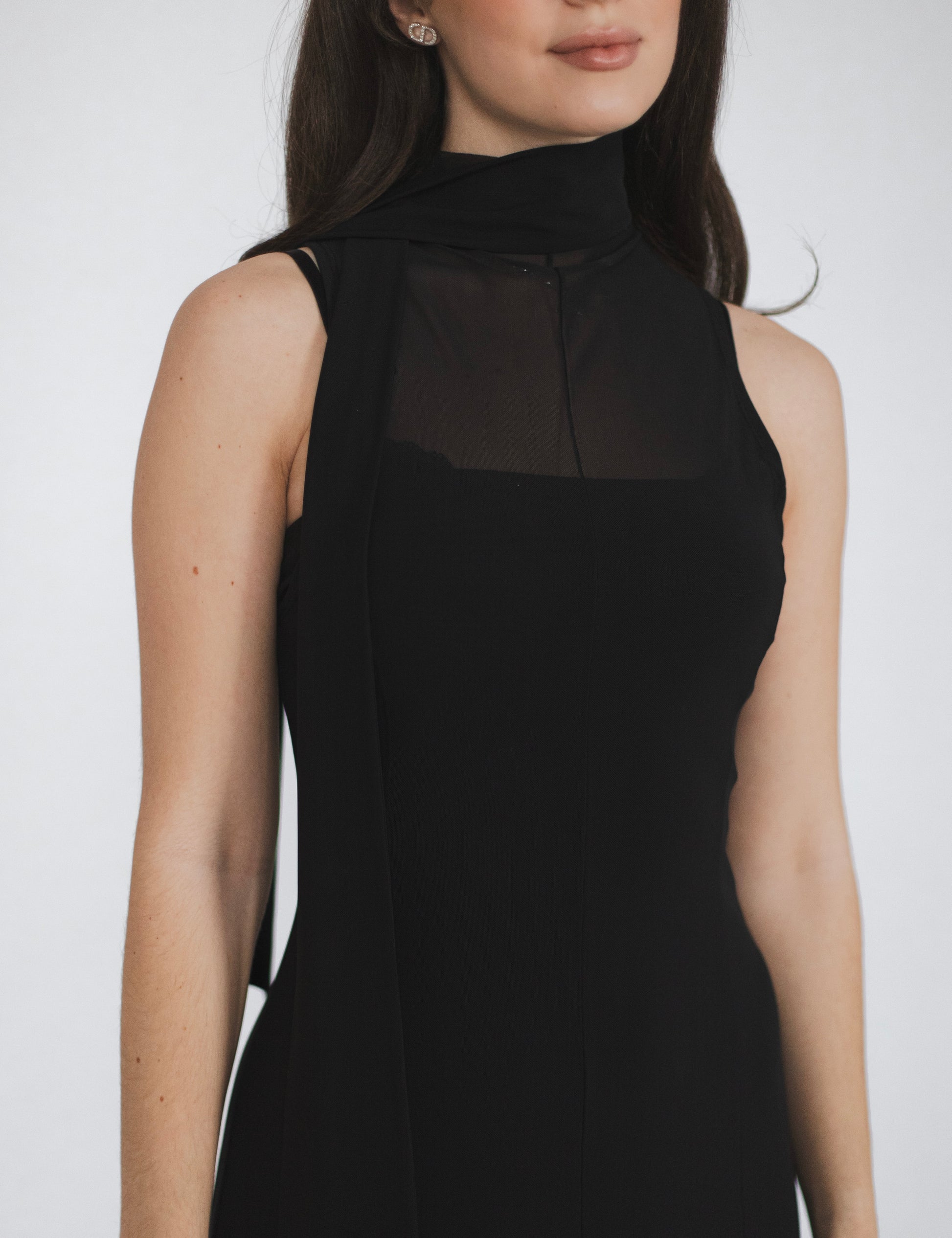 В комплекті є трикотажна силуетна міні-сукня, завдяки якій образ виглядає стриманіше.
