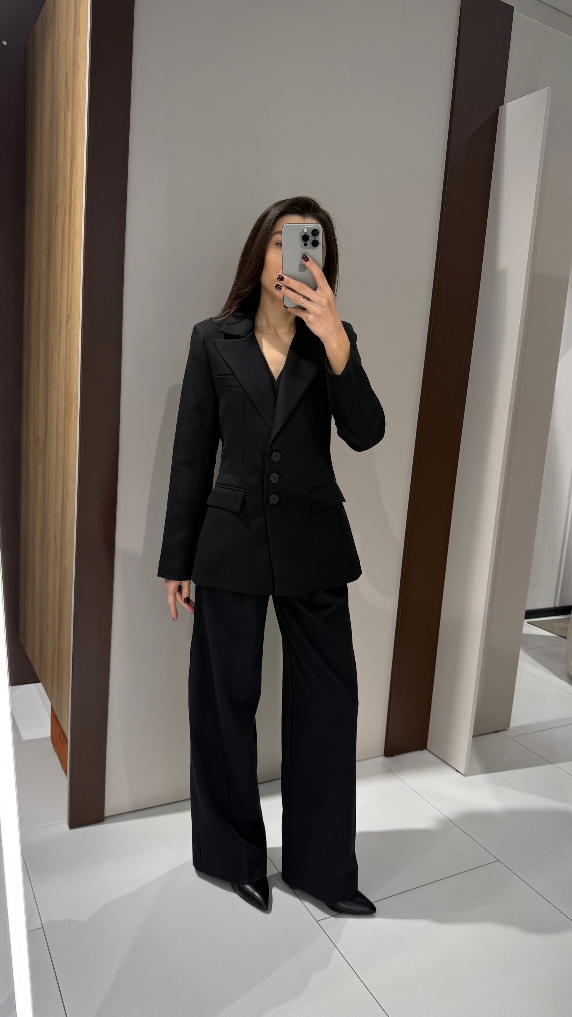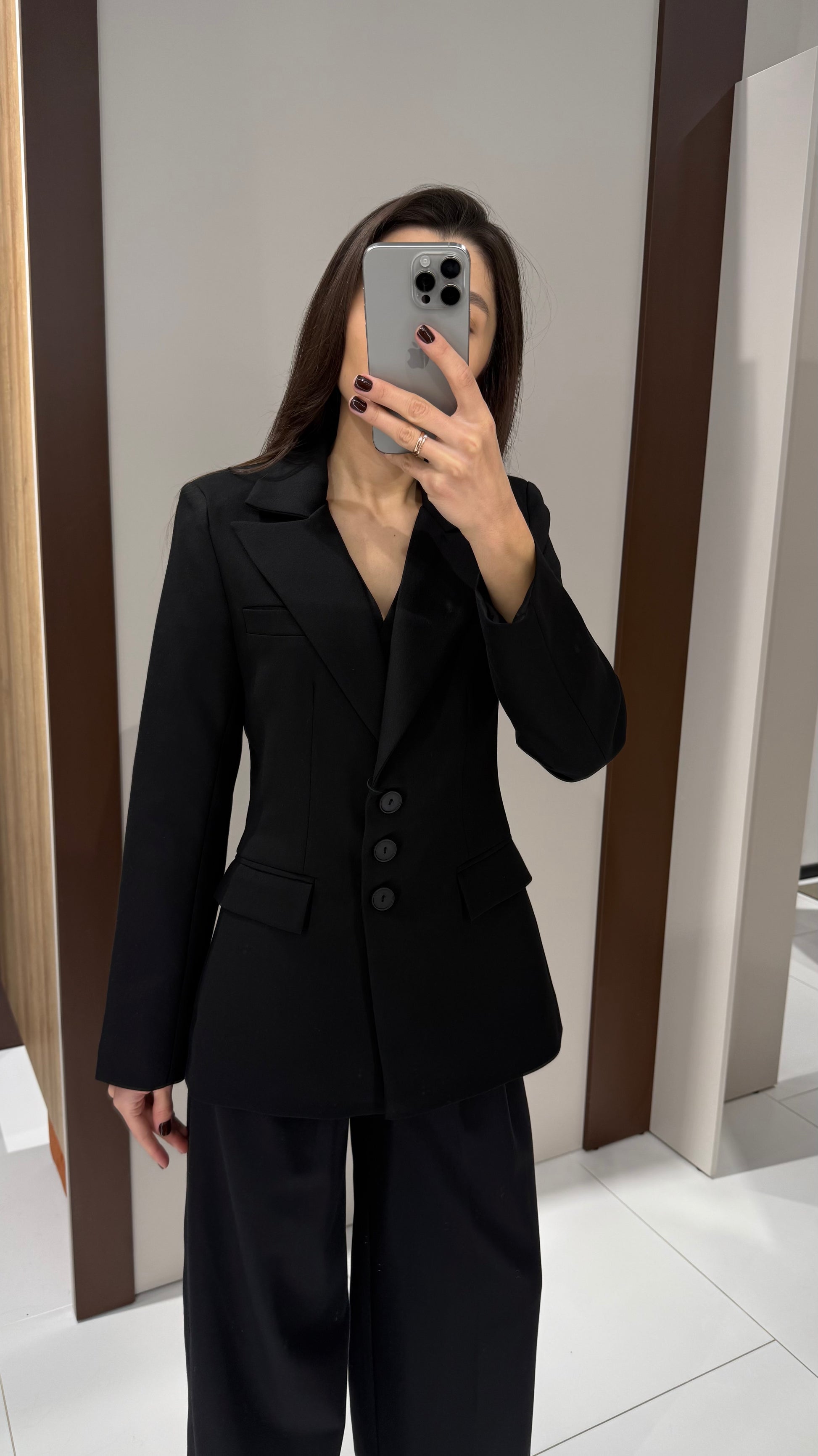 Класичний приталений піджак ідеальної довжини – не вкорочений і не занадто довгий. Підходить навіть худеньким та невисоким. Добра посадка, хороша тканина робить його непростою річчю.